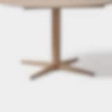 Thanks to the construction, with the column base in the middle, you don’t have to take protruding table legs into account when you need to fit many chairs around the table. The column base has slender legs and brackets that support the table top – a decorative detail that also makes the construction stable. Another practical detail is the table top, which has no skirt around the edge, meaning that even armchairs can be pushed in properly.