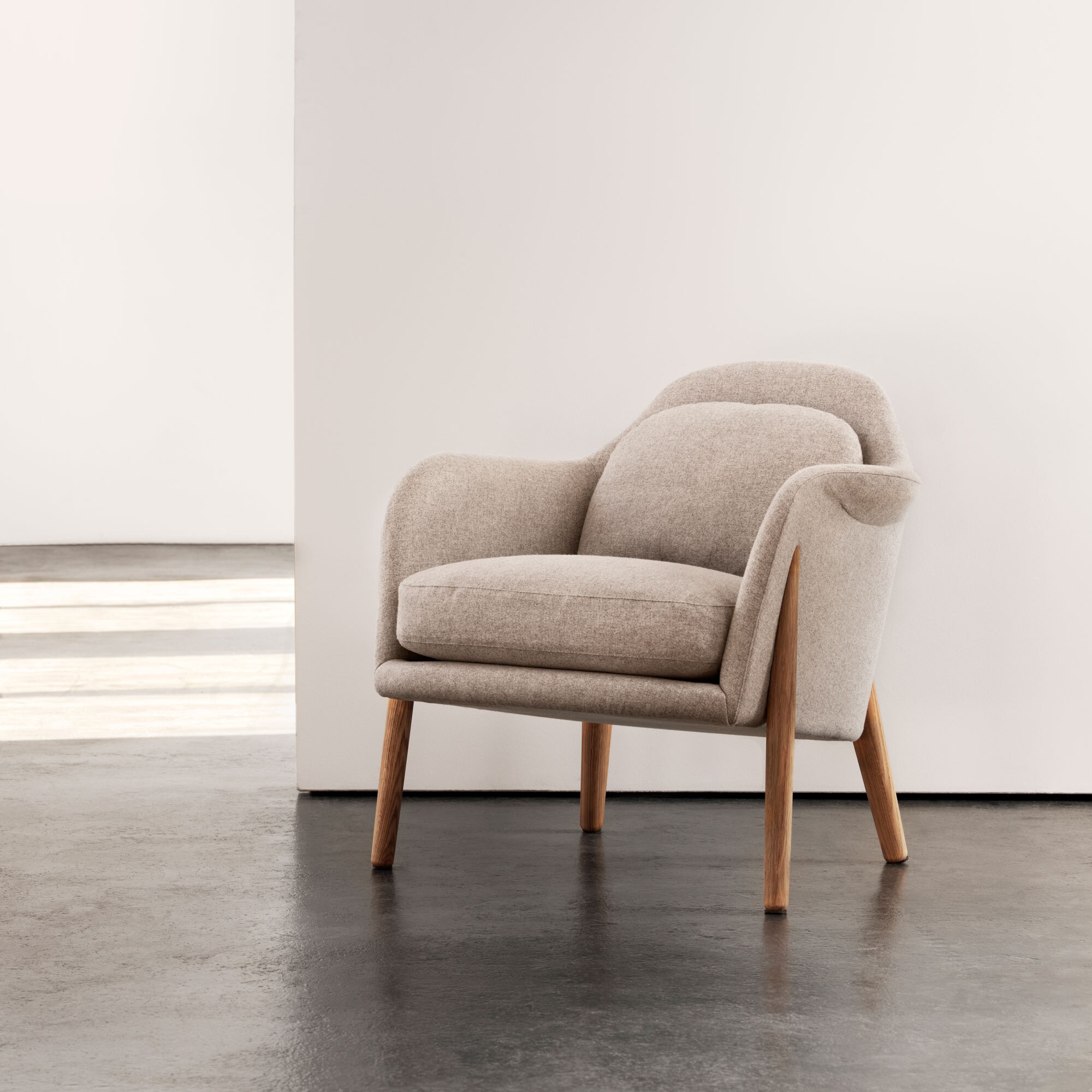 Armchair Ri is an easy-to-place and harmonious armchair, with its soft and well-balanced shapes. A sophisticated and exclusive piece of furniture - both inside and out. Just like a bergère (18th century French armchair), it is meticulously crafted, down to the smallest detail. One of Sweden's most skilled upholsterers has been involved in developing and working on the construction of the seat cushion and the upholstery design, as well as helping to choose the best possible upholstery fabric. A remarkable exclusivity that you may not notice at first glance, but which becomes all the more apparent when you sit down in Armchair Ri. The name Ri comes from a tool used in the past in architecture and shipbuilding, to draw curves and curved lines. And that, of course, alludes to the softly curving shape of the armchair.