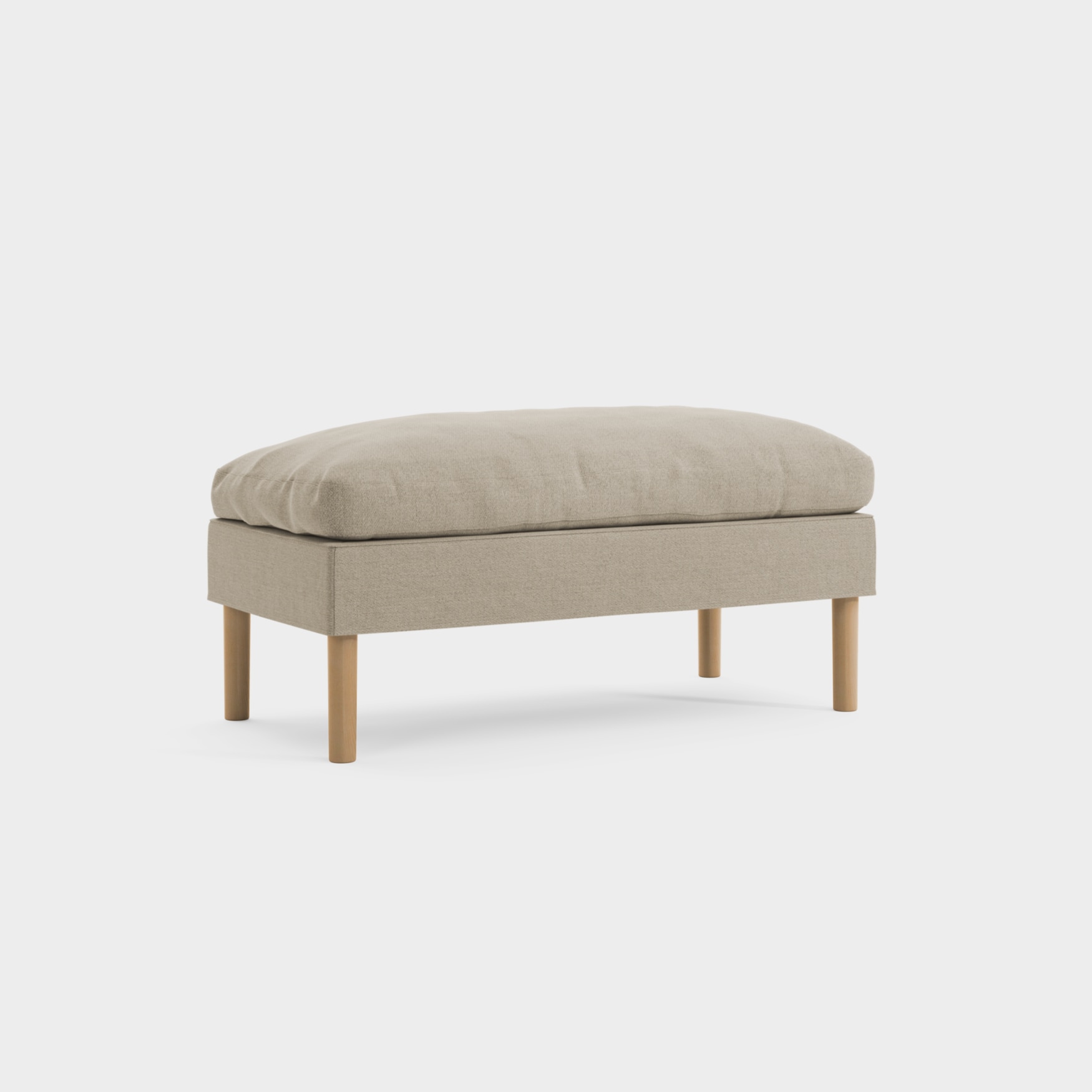 Add a matching footstool for additional comfort. By choosing between several fabrics and legs, you can put your own stamp on the sofa. Add extra cushions in different sizes and materials for a personal touch.