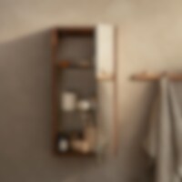 Bathroom cabinet in solid oak. This cabinet is available in two heights and has no back, which saves on material and prevents moisture and dirt from building up behind the mounted cabinet.