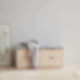 A "Massiv" bench in white-oiled birch with four spacious drawers, each with cutout handles, and a beautifully upholstered seat with luxurious sheepskin. Here, there is room for various items that you prefer to have easily accessible without cluttering up the space – such as workout clothes, a blanket for the stroller, gloves, a raincoat, caps, sunglasses, a dog leash, and cloth bags. And much more, of course.