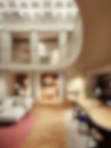 The renovation work has involved stripping away all installations, suspended ceilings, and unnecessary wall coverings. This revealed the structures from 1911, which are left exposed in a raw manner. The stylistically inappropriate glass partitions in the facade have been removed and replaced with solid oak panels, more akin to the original design. When you step into the store, you'll encounter a kind of outdoor feeling with concrete floors and a low wall. This stylistic approach flirts with the influential figures of the time; Axel Munthe, Carl Milles, and Carl Eldh – and their characteristic national romantic expression. This also complements the stone staircase exceptionally well. In other parts of the premises, the original parquet flooring will be supplemented with solid oak flooring laid plank by plank. With all coverings removed, the concrete ceiling will be exposed – a deliberate choice to highlight the structural elements, much like Norrgavel's visible furniture constructions. So, how will customers experience the renovation and the changes when they step into the premises at the end of August?