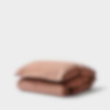 Duvet cover in a beautiful brick pink hue from Reboco. Carefully selected quality and thoughtful design to give the sensation of new and freshly washed bedlinen over and over again. Reboco's percale fabric, woven with the finest extra-long yarns, is crisp, durable, and made from 100% organic cotton. All Reboco bedlinen comes in a colour-matched pouch made from leftover fabric.