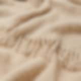 A mohair blanket with fringes is made of 70% mohair and 30% wool. The blanket is crafted from recycled mohair, making it a more environmentally friendly choice without compromising on quality. Mohair lends softness and warmth to the blanket while adding texture.