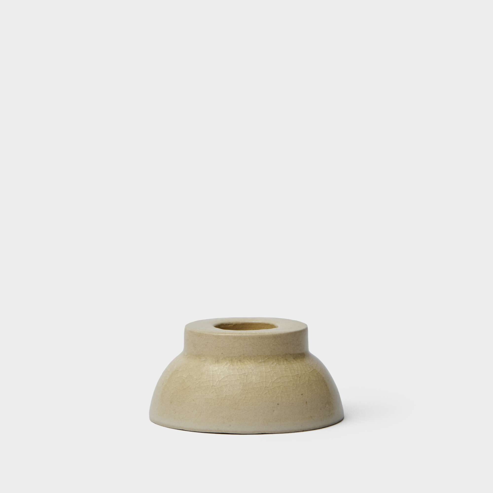 Candle holder in ceramic by Sofie Berg. The candle holders are wheel-thrown, polished and bisque fired before being smoke-fired in a low-oxygen environment where smoke and sawdust influence the clay surface and create subtle variations.