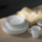Similar to Norrgavel's furniture, the series is designed to be used and cherished for generations. The porcelain is highly durable and can withstand both microwave and dishwasher use. The bone china has an incredibly beautiful luster and is available in either classic all-white or with a thin, hand-painted gray border, created exclusively for Norrgavel.