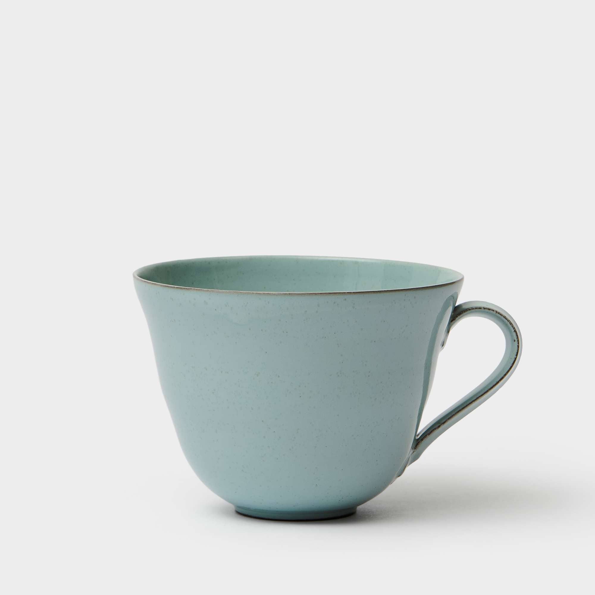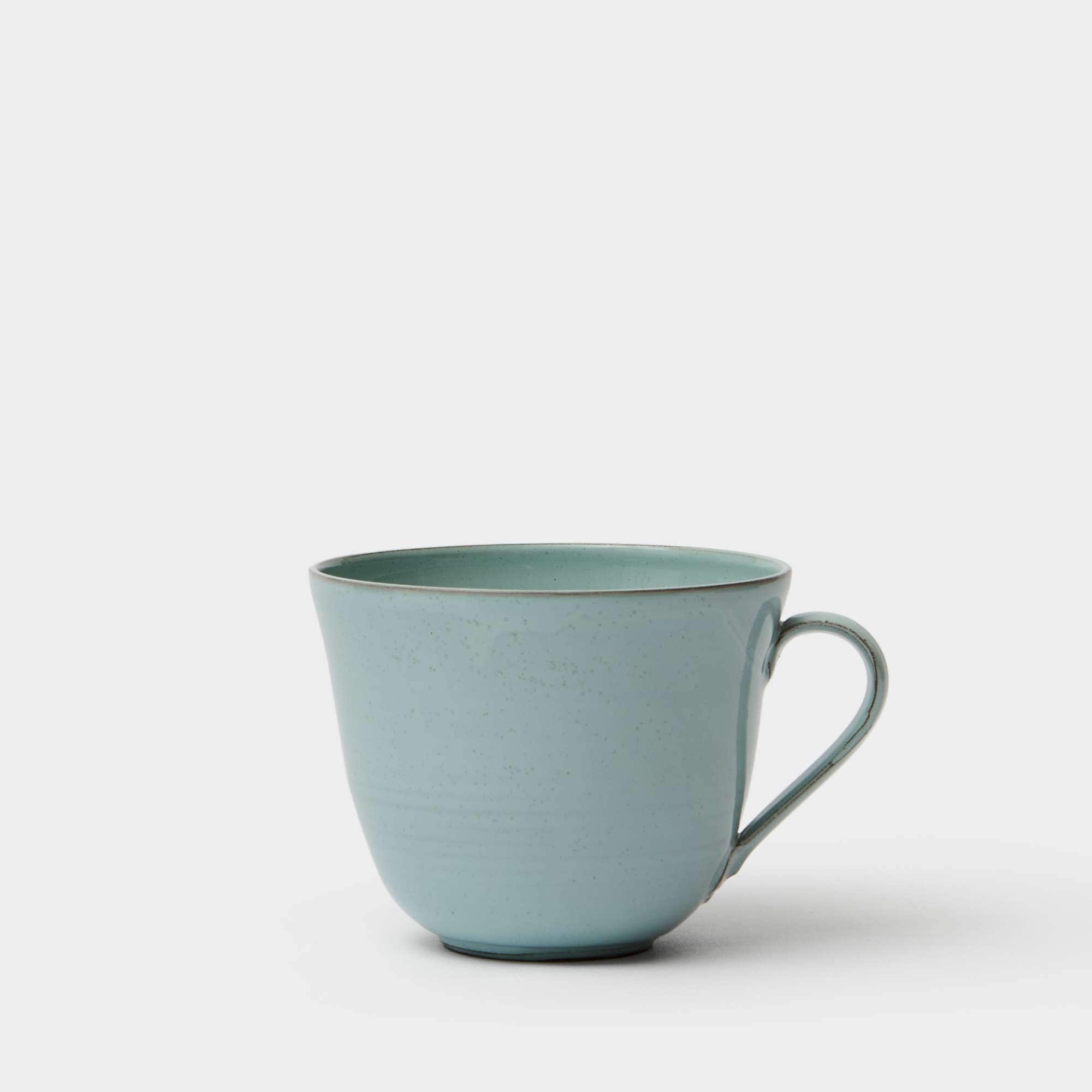 Teacup in high-fired earthenware with a dim turquoise glaze. Made by Annica Gjerstad in her pottery studio in Sweden.