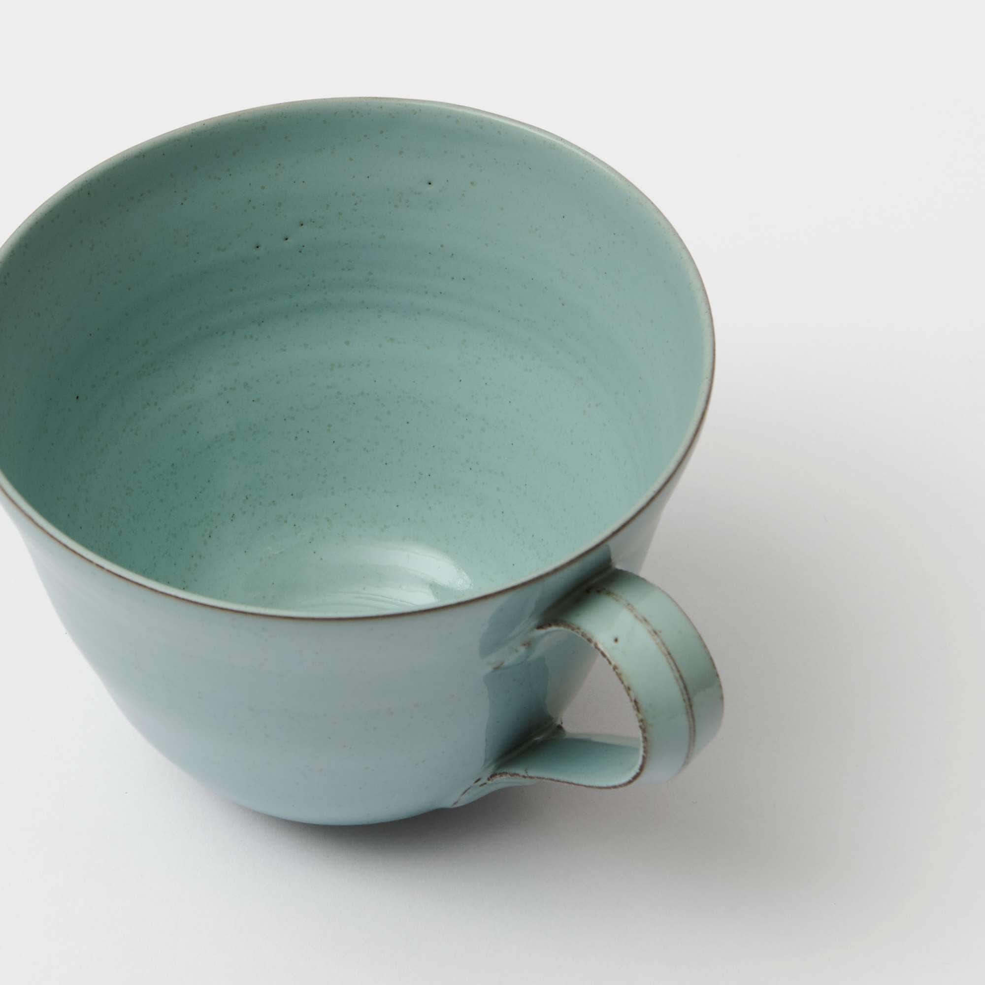 The cup has a diameter of approximately 12.5 cm and a height of approximately 9 cm. All measurements are approximate, as shape and size may vary slightly during the drying and firing process. Each cup therefore has its own unique character, and natural variations in glaze and surface occur.