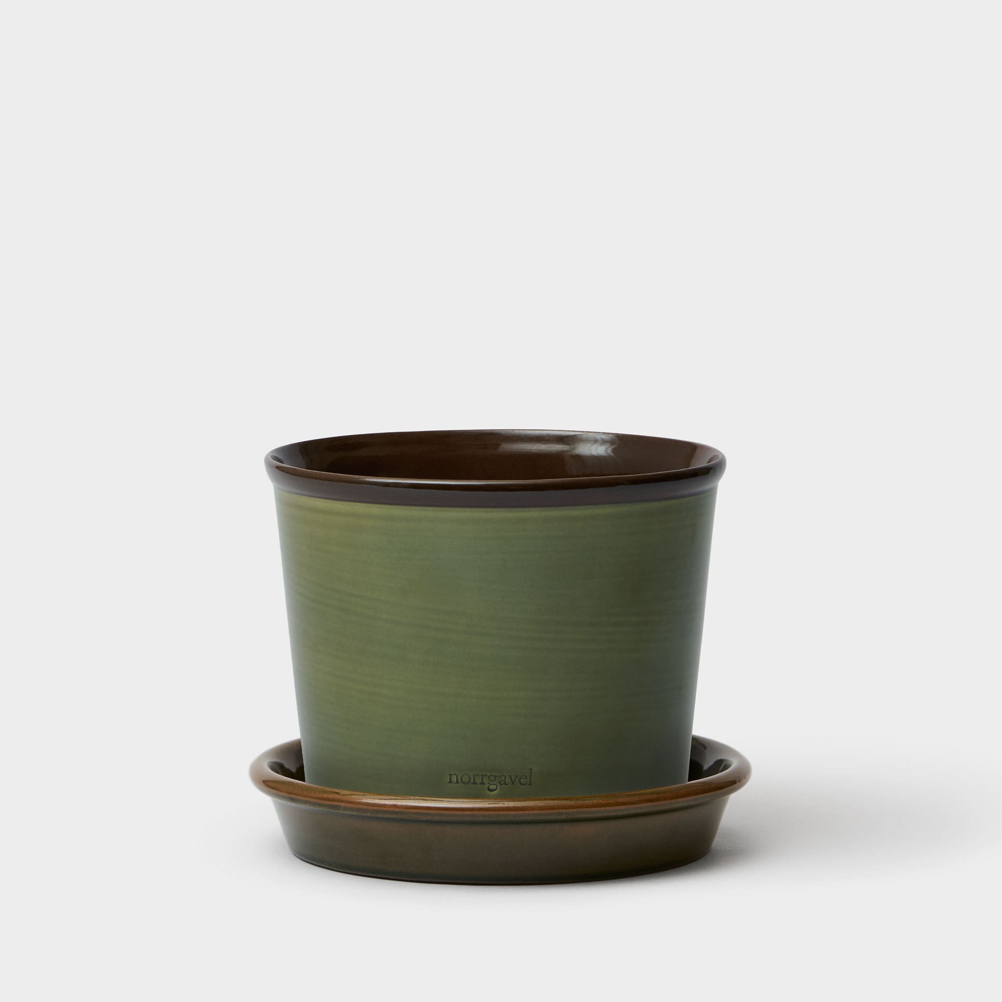 Pot with saucer olive/brown 17.5 cm -